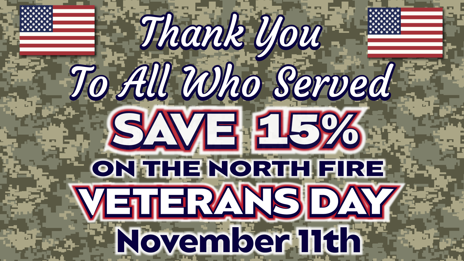 Veterans Day Sale!15% off ALL NORTH FIRE PRODUCTS
